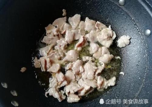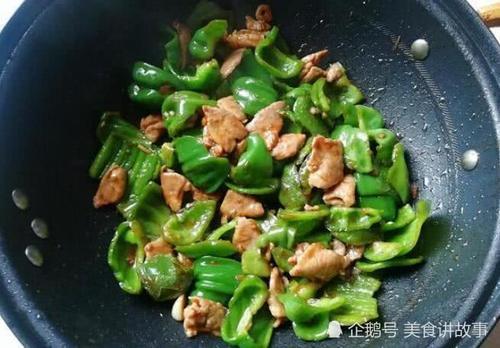 制作方法:首先把青椒洗干净,将猪肉切成薄片,让后加入料酒和盐以及淀粉腌制大概十五分钟,之后热锅起油,加入肉片之后翻炒,肉片颜色吵白之后盛出备用。