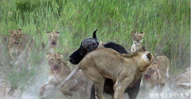 野牛似乎还在继续发怒,不停地翻摔狮子,狮子被牛角刺穿了腹部,重重的落在地上,周围的狮子没有一个敢上前的,都在围观,狮群也害怕了,母牛完美复仇后奔向牛群。