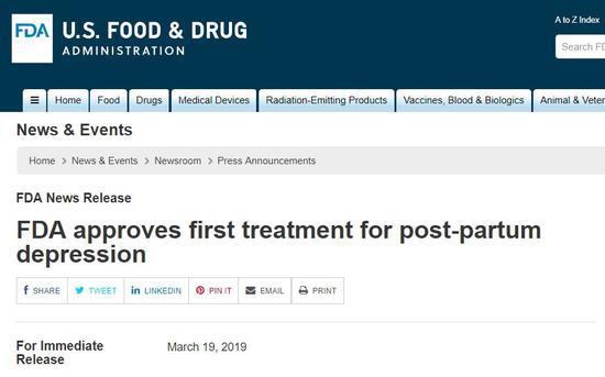 这是史上药监部门首次批准一种专门用于治疗产后抑郁症的药物,为患有产后抑郁症的妈妈