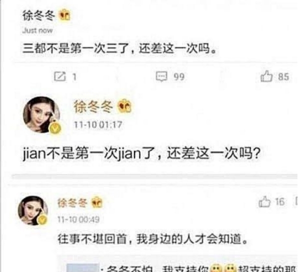 王鸥还被徐冬冬骂过,当时王鸥和徐冬冬的男友蒲巴甲有合作,王鸥跑去蒲巴甲的车中录视频,还指着他说:“这是我老公”,让徐冬冬气急败坏开骂王鸥,并说她已经不是第一次当小三了。
