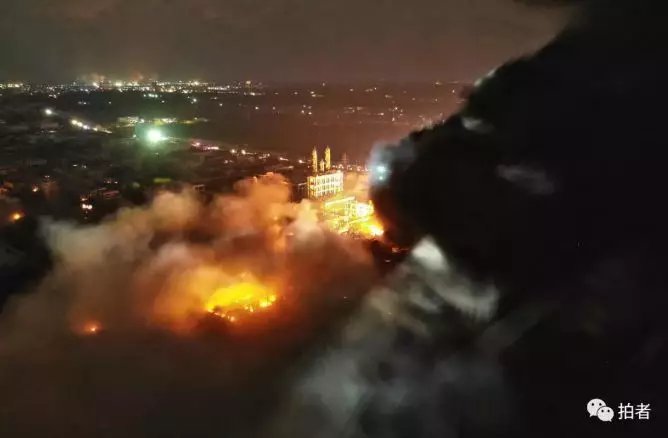 3月22日0点20分,江苏响水化工厂爆炸现场仍有明火。图片来自新京报。