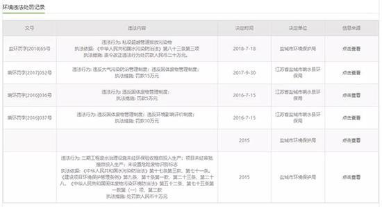 本次爆炸工厂在公开记录里的环境违法处罚信息(2015-2018)