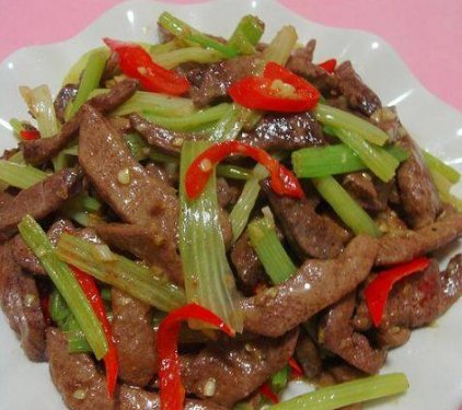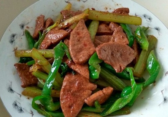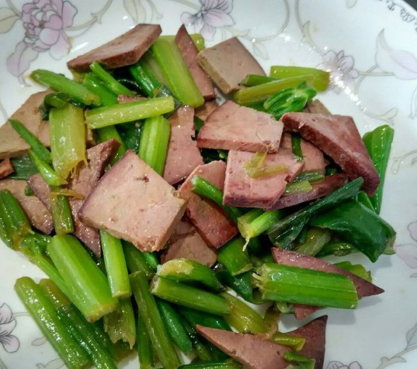 做法:准备芹菜300克、猪肝200克、猪油大概100克、适量的白糖、酱油、食盐、料酒、淀粉等调味品。芹菜、猪肝清洗干净,芹菜切小段,猪肝切成片状,用食盐、淀粉、酱油将猪肝拌匀,让猪肝提前入味。 热锅倒入适量的猪油,加入猪肝翻炒,等猪肝变色时,盛出,在锅中留猪油。 将芹菜段放入锅中翻炒几下,炒熟后即可加食盐、白糖等调味品,然后放入炒好的猪肝一起翻炒。