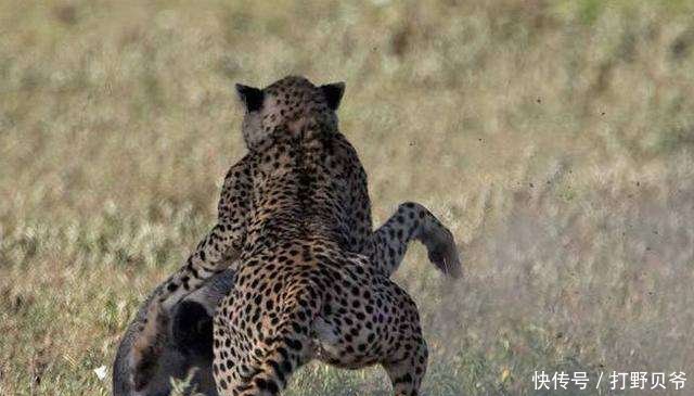 花豹很少用嘴攻击对手,只是用前爪和对手来回的招呼,这样子咋看就和家猫没啥区别呐!平头哥则不同,平头哥那都是真是伤害啊,一旦被咬到那就得掉块肉啊!?就在平头哥和花豹打的火热的时候平头哥扭头仿佛看到了什么!这下平头哥突然停手了,平头哥:你的孩子来了,你还是先去给孩子喂奶吧!
