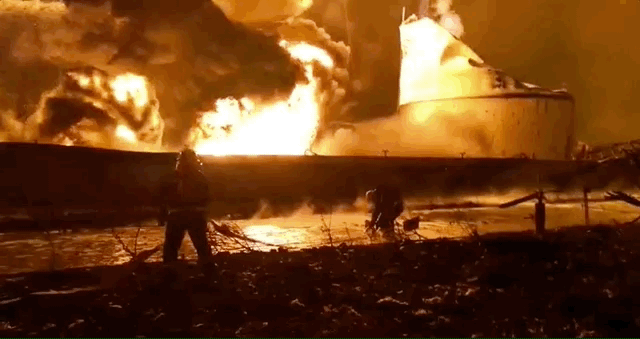 3月22日0点20分,江苏响水化工厂爆炸现场仍有明火。拍者半年摄