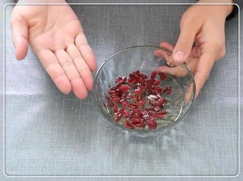 二,将枸杞放入温水中,然后加入食盐,让它在盐水中泡8到10分钟就可以了,这样枸杞酒清洁多了,去除枸杞表面的污垢之后,我们再用凉水清洗一下就可以食用了。