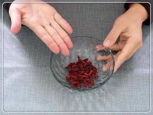 一,首先把枸杞放进容器中,然后在里面加入一些清水,之后再加入一些食盐,食盐具有杀菌消毒的作用,可以将枸杞缝隙内的细菌和表面隐藏的灰尘可以清洗干净。