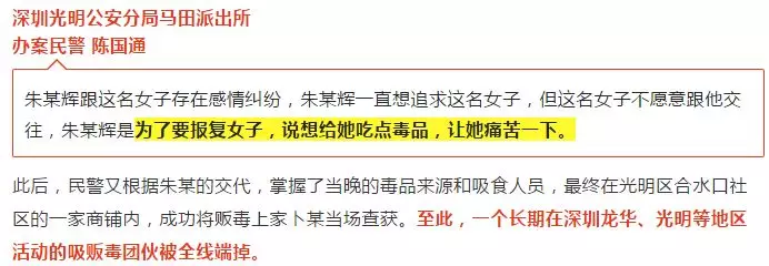 目前,涉嫌欺骗他人吸食毒品的朱某及涉嫌贩卖毒品的卜某已被光明警方依法刑事拘留,其余男子均因涉嫌吸毒,已被光明警方依法行政拘留,案件正在进一步侦办中。