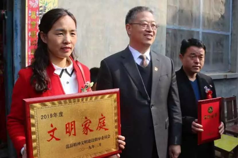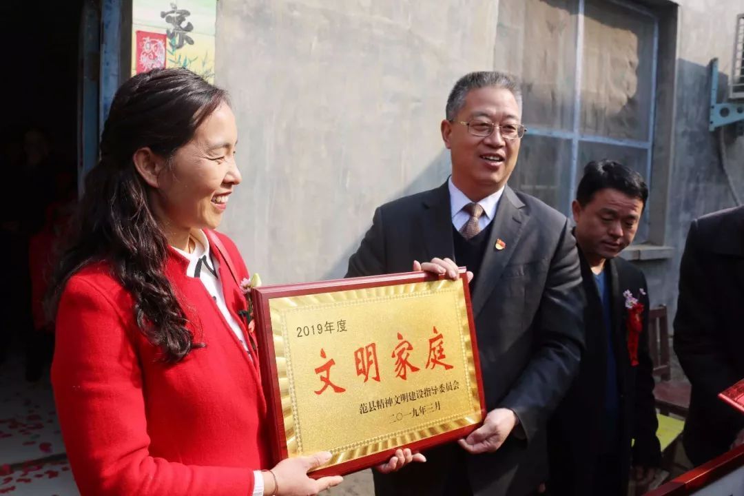 “好礼”送上,一块是范县精神文明指导委员会授予的“文明家庭”奖牌。