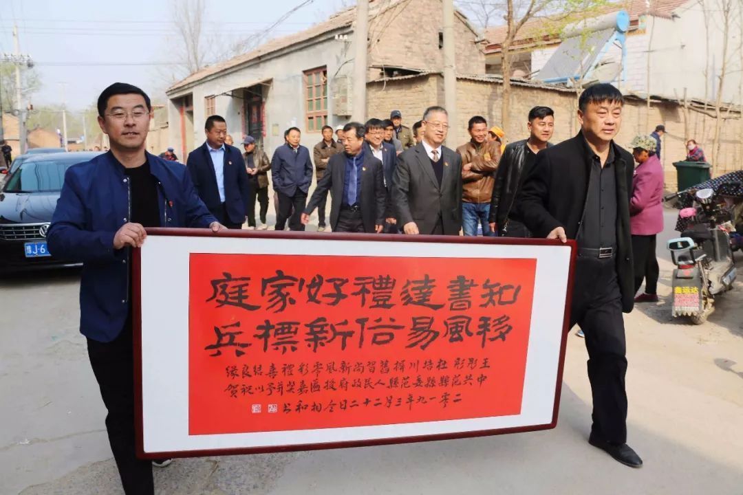 一块是由范县籍书法家仝相和撰写的“知书达理好家庭,移风易俗新标兵”匾额。