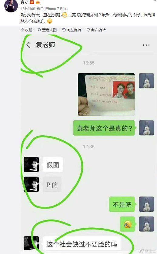至于袁立晒的这张聊天截图,她说“听说你昨天一直在扮演我”,这个扮演者是谁,图究竟是真的还是P的,所以结婚这事到底是真还是假呢?