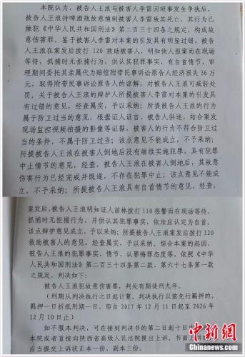 十余秒后,两人消失在视频之中。据判决书记载,王浪恢复平静后,随即让朋友拨打了120急救电话。20点48分,120急救人员感到现场,将李雷送往医院救治。后经泾阳县人民医院抢救无效死亡。