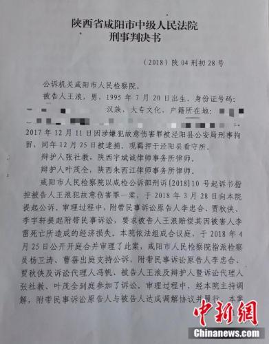 2017年12月11日,王浪因涉嫌故意伤害罪被泾阳县公安局刑事拘留。2018年6月28日,王浪被陕西省咸阳市中级人民法院判决犯“故意伤害罪”,一审获刑9年。