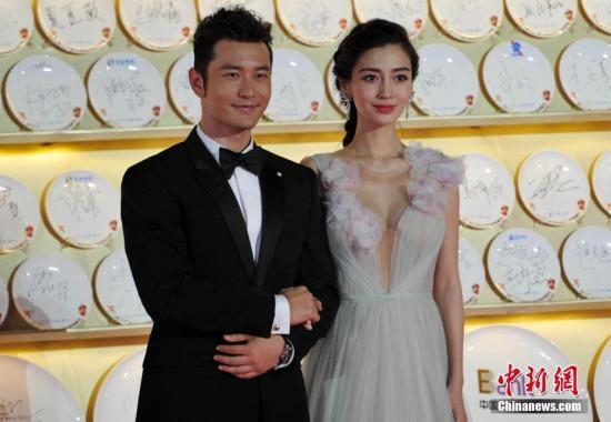 资料图:图为黄晓明(左)携爱妻杨颖。中新社记者 翟羽佳 摄