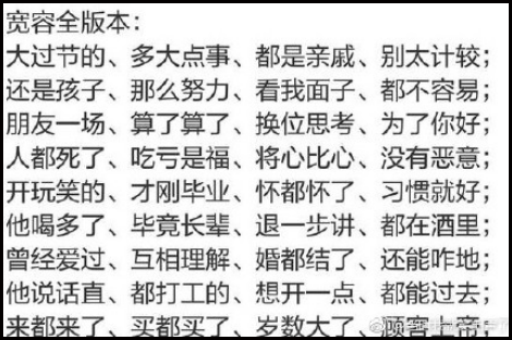 在大家花式“晒”的时候,网友@当时我就笑出了声 还一本正经分门别类地总结了一下#中国式八大宽容#