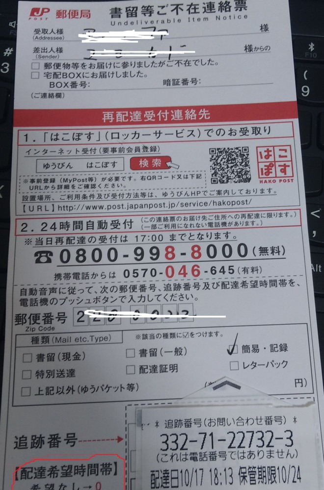 日本快递主要是送货到家。目前在日本最麻烦的一点就是日本快递员普遍不会通过手机联系你。也就是说快递员会直接按你家的门铃把货送上来,他是不会用电话联系你的。同样快递员的电话不像中国快递那样会直接显示在送货进度里,这样当你有比较紧急的货物的时候你是没法直接联系快递员要求加急配送的。 我过去的网购经历就经常出现你在家里等一整天,一不小心出去的瞬间快递员就经过了。这样你就错失的错失了货物,不得不等下一次的再次配送。是对于不紧急的建其实问题不大。因为一旦你的快递没有送到,会有一张预约卡片放在在你楼下的柜子里面,你可以扫码并要求第2天在选定时间准确的把你的货物送到。