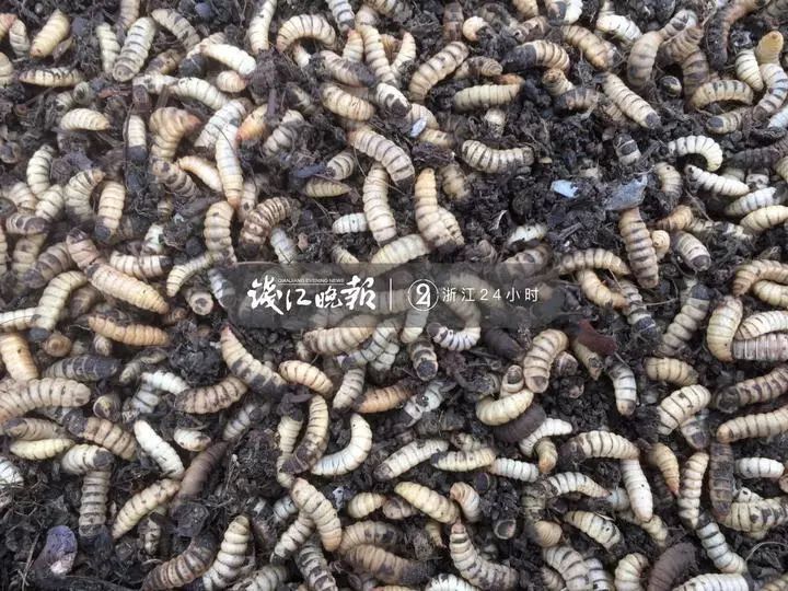 这些幼虫,就是分解餐厨垃圾的法宝,名字叫黑水虻(学名:亮斑扁角水虻)