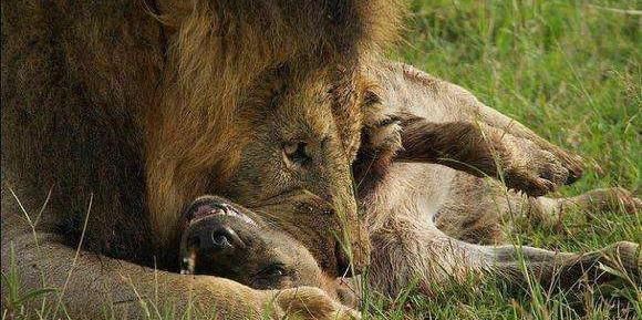 [分享]雄狮截杀鬣狗后准备吃肉,雄狮差点吐了,狮子饿死也不吃!