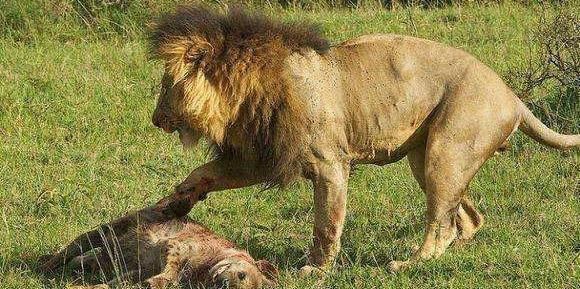 雄狮是饿坏了  但是刚想吃鬣狗的雄狮是一口咬住了鬣狗的脖子,准备喝狗血 吃狗肉  但是它咬了一口后差点就吐了!这鬣狗肉是是不是苦  还是臭  或者是骚  气的雄狮是在鬣狗身上踹了两脚!