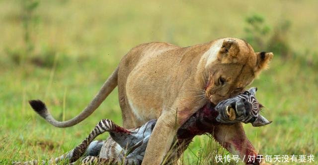 一头饥饿的狮子在野外捕获到了一只小斑马,这只小斑马被捕到时在拼命地争扎,最后被狮子一口要断脖子,就这样在狮子的控制之下,这只斑马慢慢地失去了无生命力。