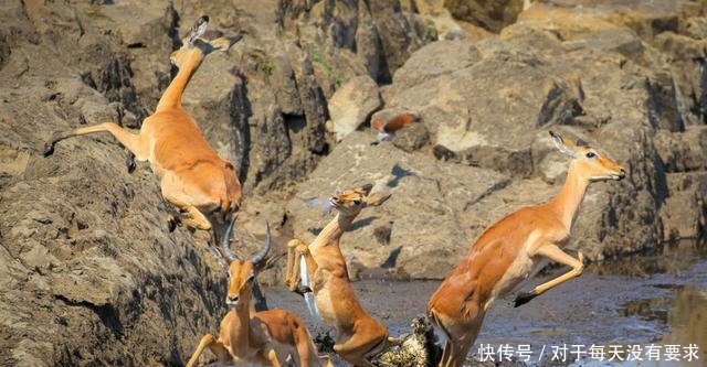 在南非的一个野外,数只黑斑羚在靠近水坑喝水的时候,突然从水里冒出一只埋伏已久的凶残鳄鱼,其中一只黑斑羚被不幸逮到。