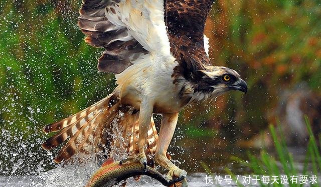 图中这样的一幕被一名国外摄影师意外拍到,一只老鹰在水里发现了自己的猎物,迅速地俯冲下水里,将水里的鱼抓住,一时间只见鹰爪下的鱼已经惨死在鹰爪下,这样惊险的一幕让人异常激动。