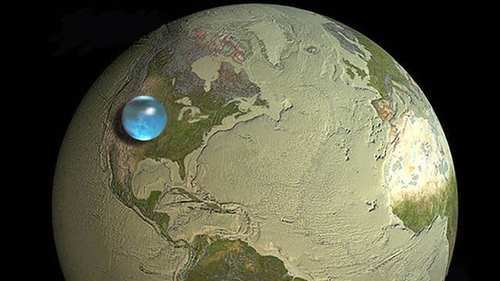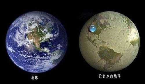 把地球上的水汇聚起来,和地球相比的话大致就相当于上图右边地球上的小水珠。
