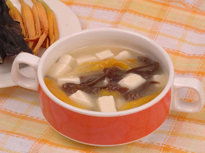 (5)强身健体豆腐中杜汉大豆卵磷脂以及丰富的优质蛋白,有益于神经,血管以及大脑的生长发育,可以增强免疫力,强身健体。经常食用木耳豆腐汤可以软化血管、清肠胃、降血脂的作用。