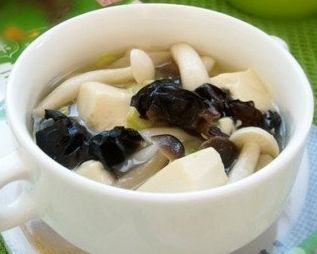 食材:木耳、豆腐、油、盐(各适量)。做法:将木耳泡发后洗净;木耳和豆腐一起放入锅中。(可以根据自己的口味加点胡萝卜等蔬菜);煮十分钟即可食用。