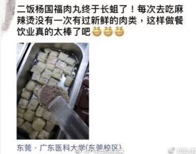 3月31日,广东医科大学学生爆料称,该校第二饭堂“杨国福”档口出售的肉丸被发现疑似蛆虫的异物。