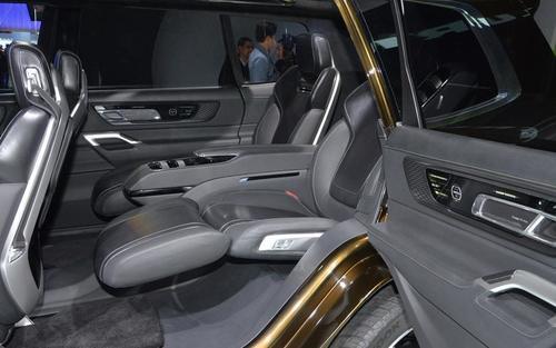 内部空间也十分宽大,它的设计初衷是一台7/8座的SUV车型,而第二排则被重点打造成了一个双座的头灯舱,座椅带有巨大的中央扶手,而且有电动调节的靠背和靠脚。大面积的天窗进一步带来了舒服的体验感。