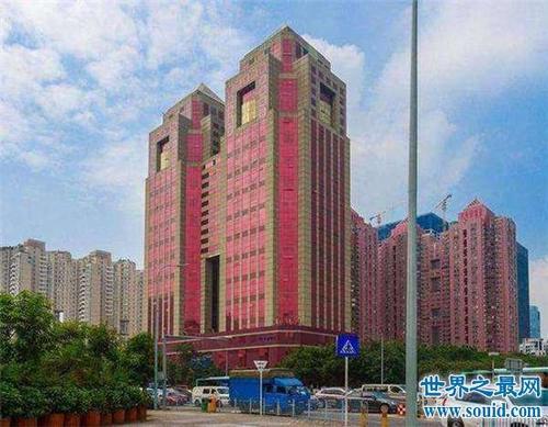 深圳中银大厦是集住宅跟办公一体的一幢大楼,位于深圳的市中心位置。按理说,这么热闹的地方,怎么会被称之为是鬼屋呢?因为深圳中银大厦的外观是粉色的,看着就像是个粉粉的蜡烛。而让人们看到这个造型,就想到了辟邪。