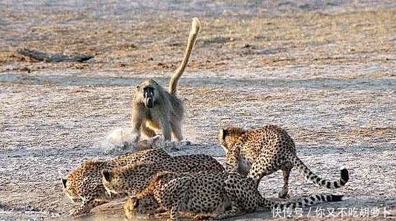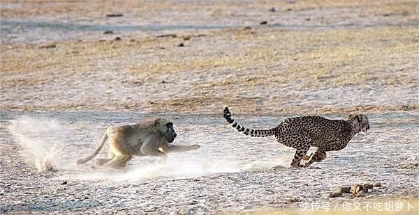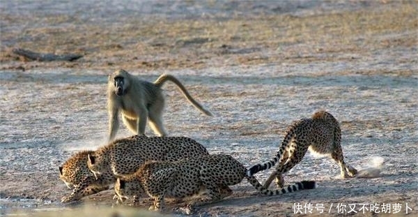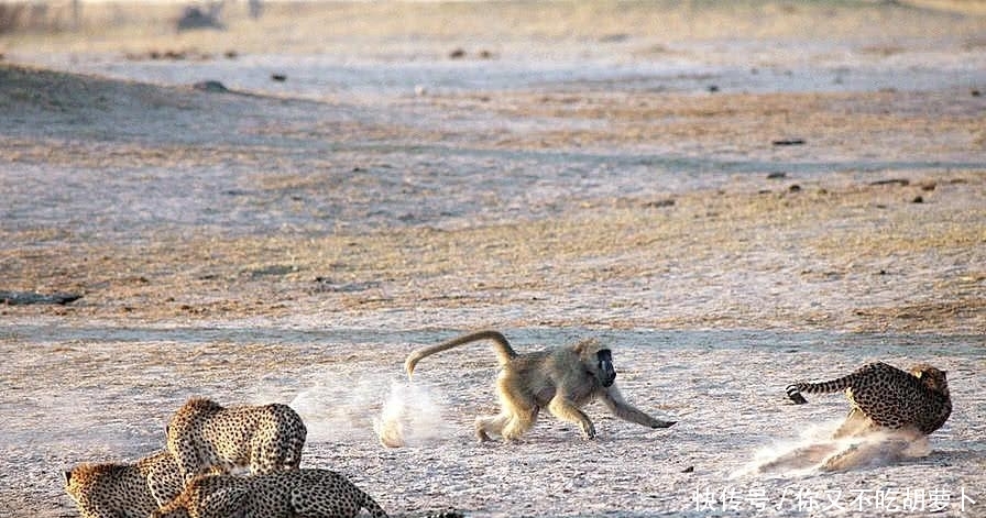 帮助同类,看着狒狒追着猎豹在河边不停的跑。