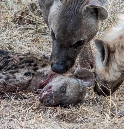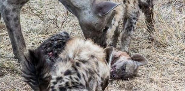 [分享]鬣狗捕猎回家看见自己的幼崽已经被咬死,愤怒的鬣狗做出这事!