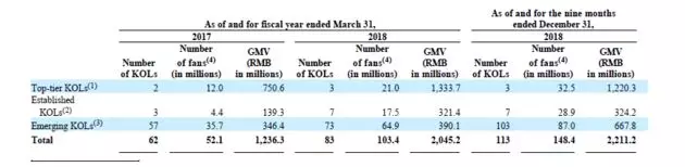 二是服务:向品牌、在线零售商和其他商家提供KOL销售和广告服务。