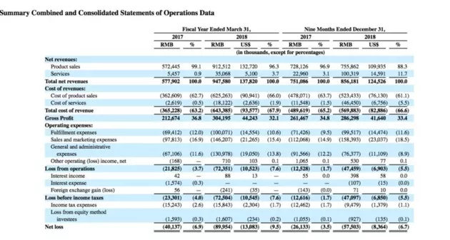 在如此高昂营销成本的基础上,还有很多流程上的环节,比如网红的抽成,快递的成本,退换货成本、网店运营成本等等。2018财年前三季度,如涵的仓储物流费用为9951.7万元,同比增长39.33%。