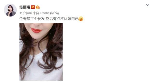 4月5日,丫丫佟丽娅晒出一张照片,她表示“今天接了个长发,然后有点不认识自己”照片中佟丽娅露出了半张脸,鲜艳的红唇非常吸人眼球,而此前一直保持短发造型的佟丽娅,有了卷曲披肩的长发。尽管只有小半张脸,但看到这样的消息粉丝们也果断开始庆祝起来,同时也有部分粉丝表示不满足,要求佟丽娅晒全脸照。
