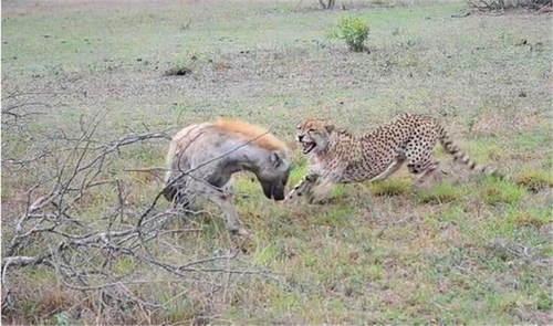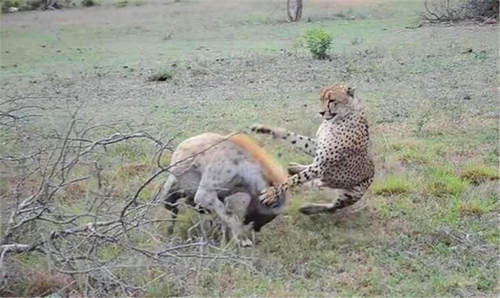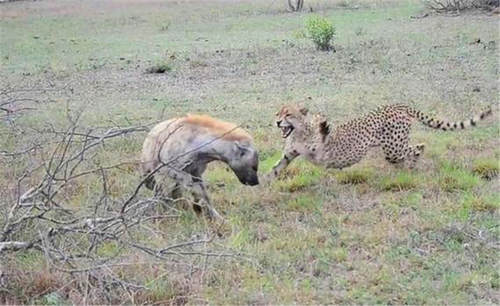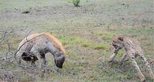果然鬣狗刚走近,这只豹子就扑了上来,对着鬣狗一脸的凶相,而鬣狗也被豹子突然的举动吓了一跳,踉踉跄跄。