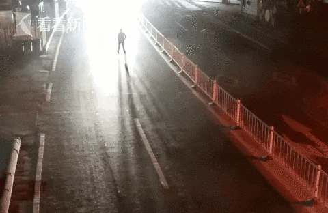 从监控中可以看到,当晚潘某和妻子在道路上对峙,正当方先生的车临近时,潘某妻子还试图将潘某拉到边上,但并未成功。潘某迎着车头上去,站在车头前面,所幸当时方先生及时停车。