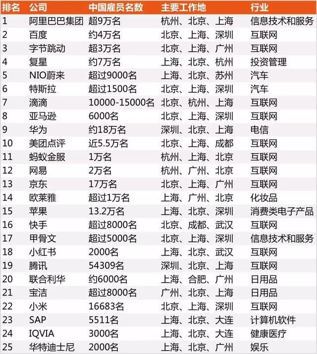 这份榜单一共有25家企业上榜,上榜公司的排名参考了对公司的感兴趣程度、与企业员工的互动、职位需求和员工留任率四个因素,并参考了中国超过4000万用户的反馈。