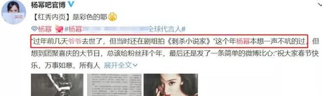 在离婚消息传出之后,最近杨幂再次迎来重大噩耗,并且官博也已经证实了,网友表示希望杨幂坚强,这个消息就是杨幂的爷爷在过年之前去世了,为什么现在才公布呢?因为当时杨幂不想让大家担心,毕竟是过年的时候,而且那会杨幂的心情也非常的不好,这种情况还是很能理解的。