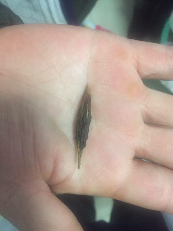 医院马上为她安排手术,术中,医生探查发现其阑尾充血水肿,且可见小肠肠管被锐性异物扎穿。经过一个多小时的微创手术,一个长约 3 厘米的枣核从她的小肠里被取出。