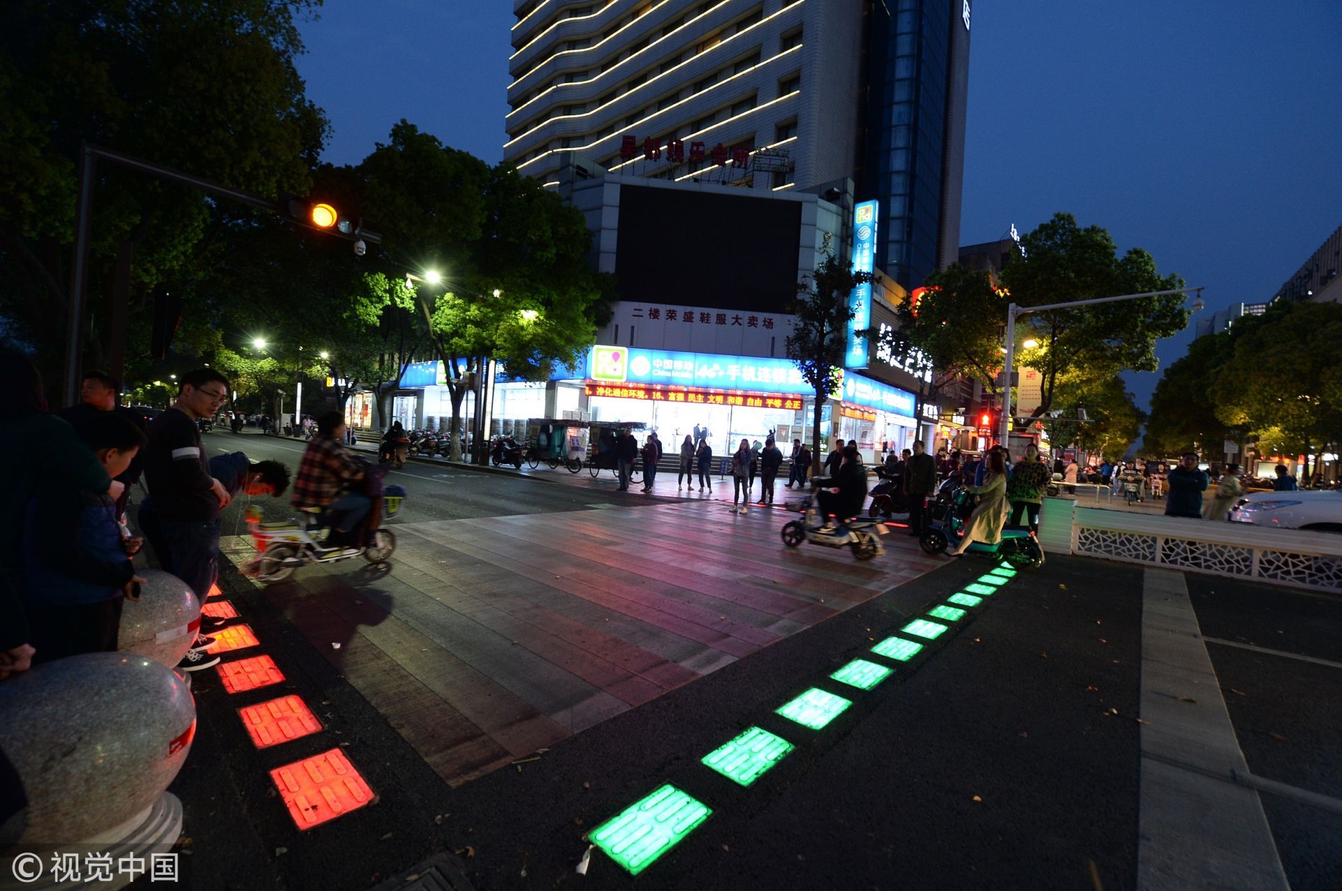 这是中国苏州市近日启用的一套智能斑马线系统,夜幕降临时,它就开始工作了:当路口变成绿灯,行人将通行时,沿斑马线嵌入路面的LED灯开始闪烁,还有语音提醒行人快速通过。