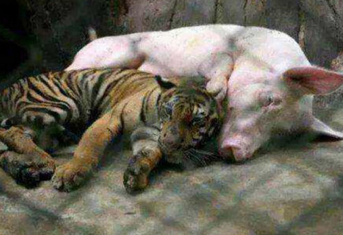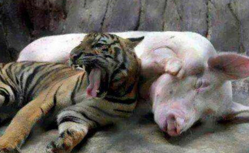 时间过得很快,慢慢的,小老虎体型长得跟母猪差不多了,不过因为长期跟母猪在一起生活,似乎在老虎身上已经完全看不出老虎的脾气和性格了,更多的是有了猪的作息时间,每天吃了睡,睡了吃。