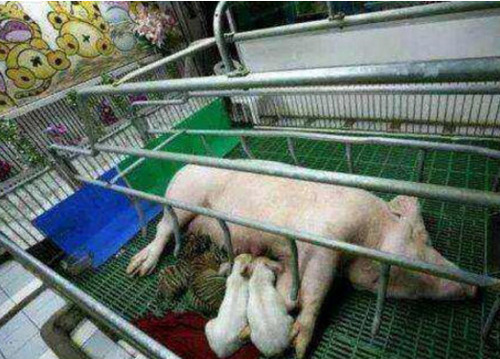 刚开始的时候,母猪好像有些不喜欢小老虎,慢慢地,母猪身上散发出了独有的母爱,每天也不排斥小老虎了,还安静的躺在小老虎身边。