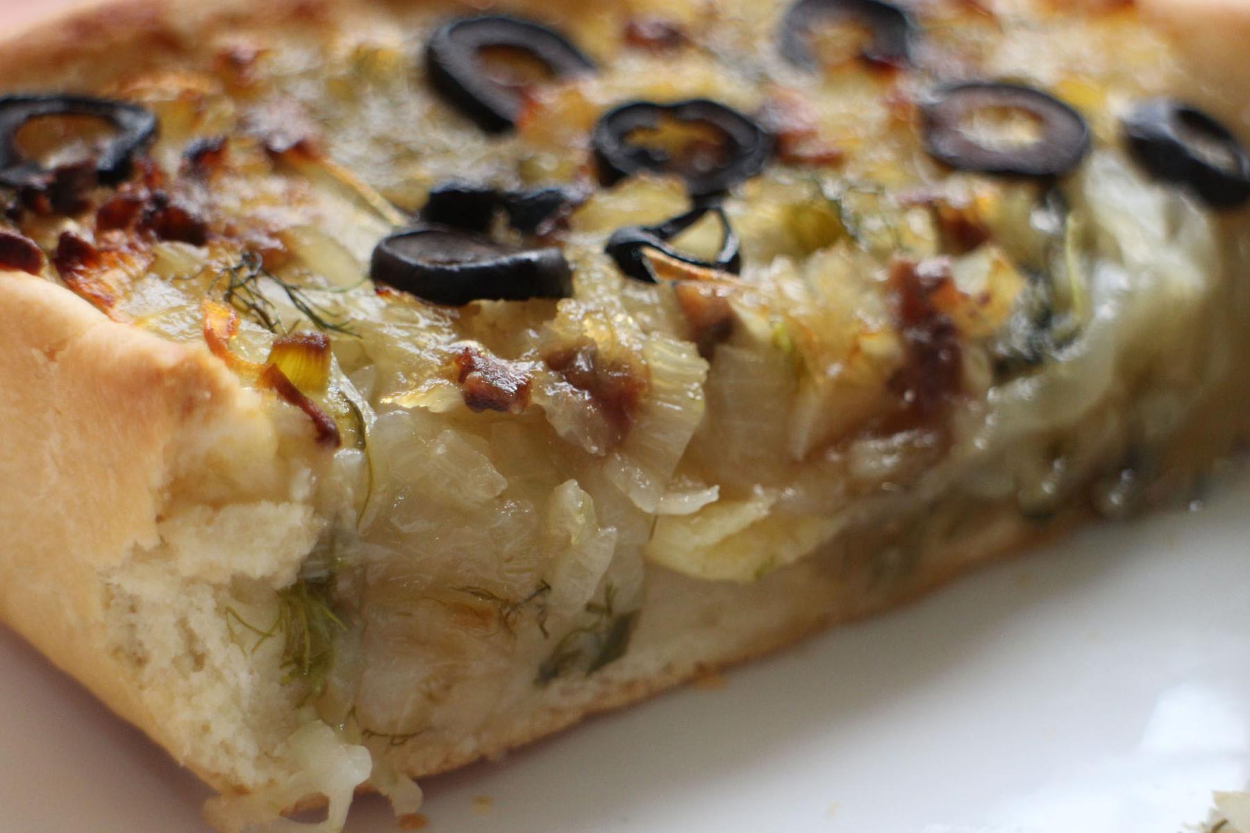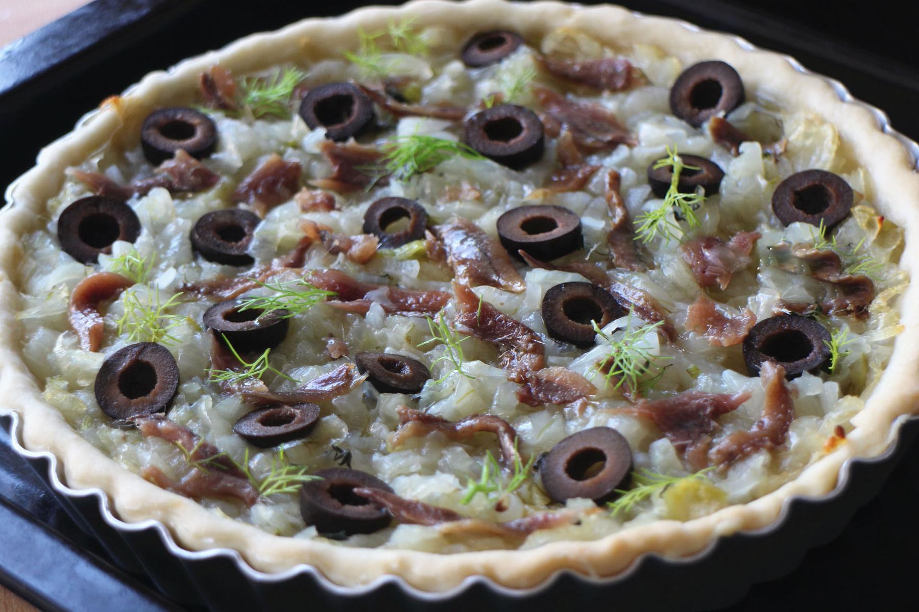 取出放上鯷鱼和黑橄榄,先做的同学都有提到咸度的问题,所以鯷鱼不放整尾,撕成小块均匀的撒上,温度提高至200度再烤10分钟,一进烤炉,鯷鱼的鲜香马上在厨房扩散开来。