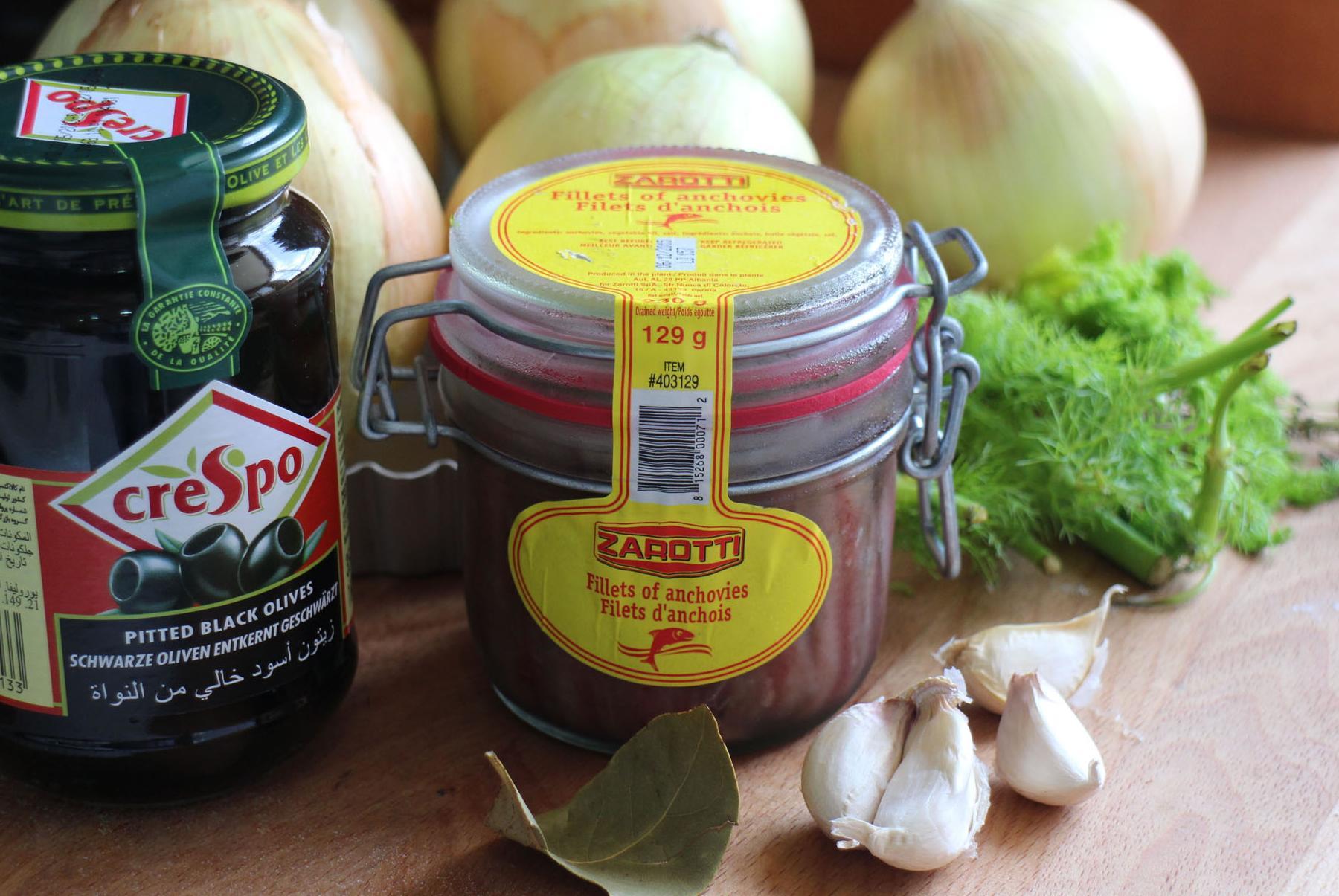等待发酵的空档正好准备内馅,洋葱、蒜头、茴香、百里香、月桂叶、鯷鱼和黑橄榄,一直想找带籽的黑橄榄,但中国好像没进口,上次买罐头装的吃起来像嚼塑胶一样,这次换买这款玻璃瓶装,价格贵一倍,但吃起来较柔软还会回甘,真的是一分钱一分货。