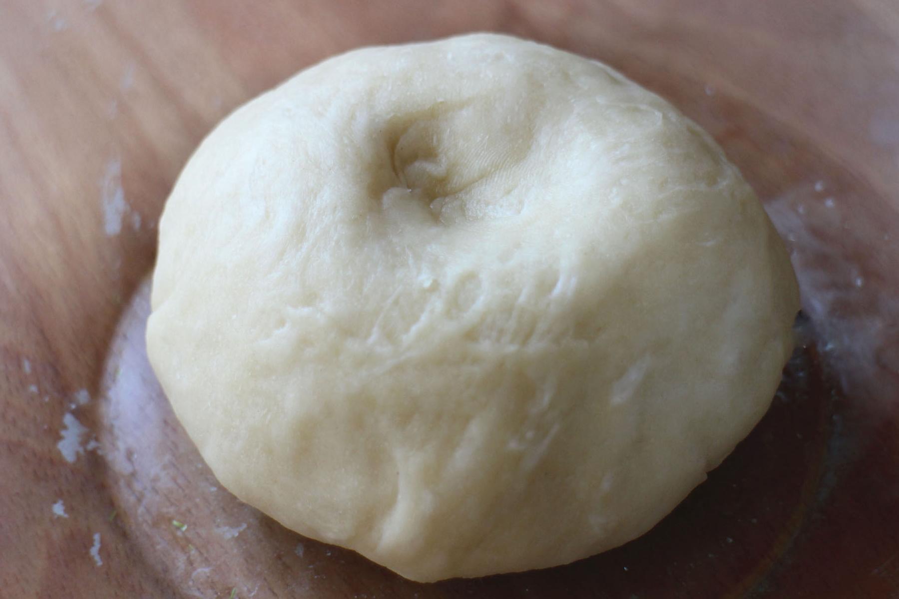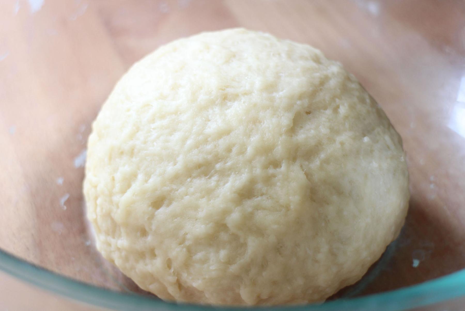 揉了一段时间面团还是没办法揉到很光滑,怕过度搓揉会出筋,所以只到这个阶段就停止,盖上保鲜膜静置发酵30分钟。