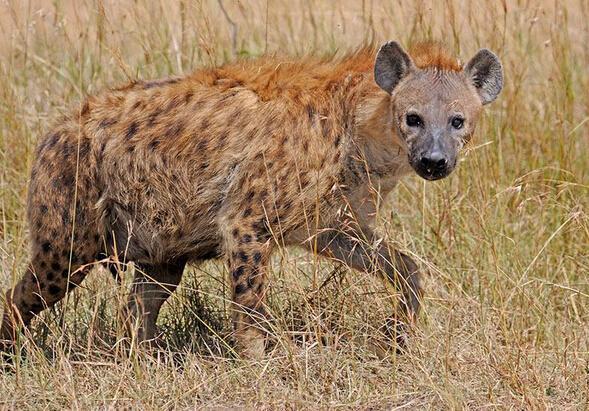 斑鬣狗分布于非洲撒哈拉沙漠以南的较开阔地区,是鬣狗科中体型最大的一种,也是最著名和捕食性最强的一种,可以成群捕食较大的猎物,是非洲除了狮子以外最强大的肉食行动物。
