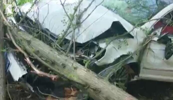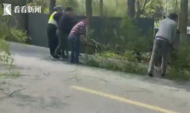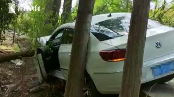 4月14日中午时分,鄞州交警大嵩中队值班民警在215省道咸祥镇庙洞口路段巡逻时,发现一辆白色轿车冲落在路肩外,一株被齐根撞断的行道树横倒在整条马路上,将双向车流死死截断。
